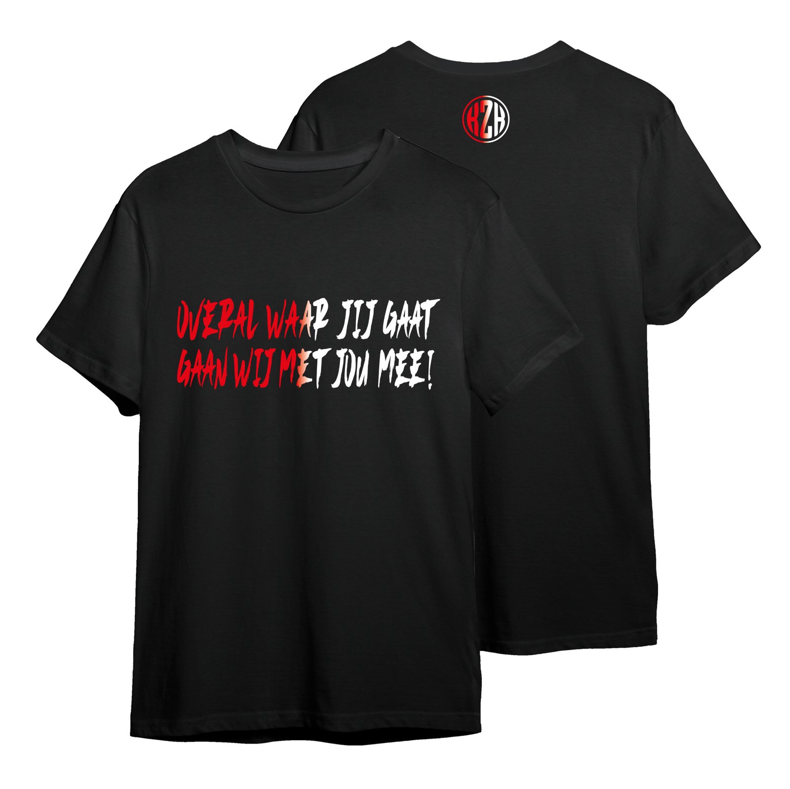 ”OVERAL WAAR JIJ GAAT” rood-wit HANDWRITE (kids – t-shirt)